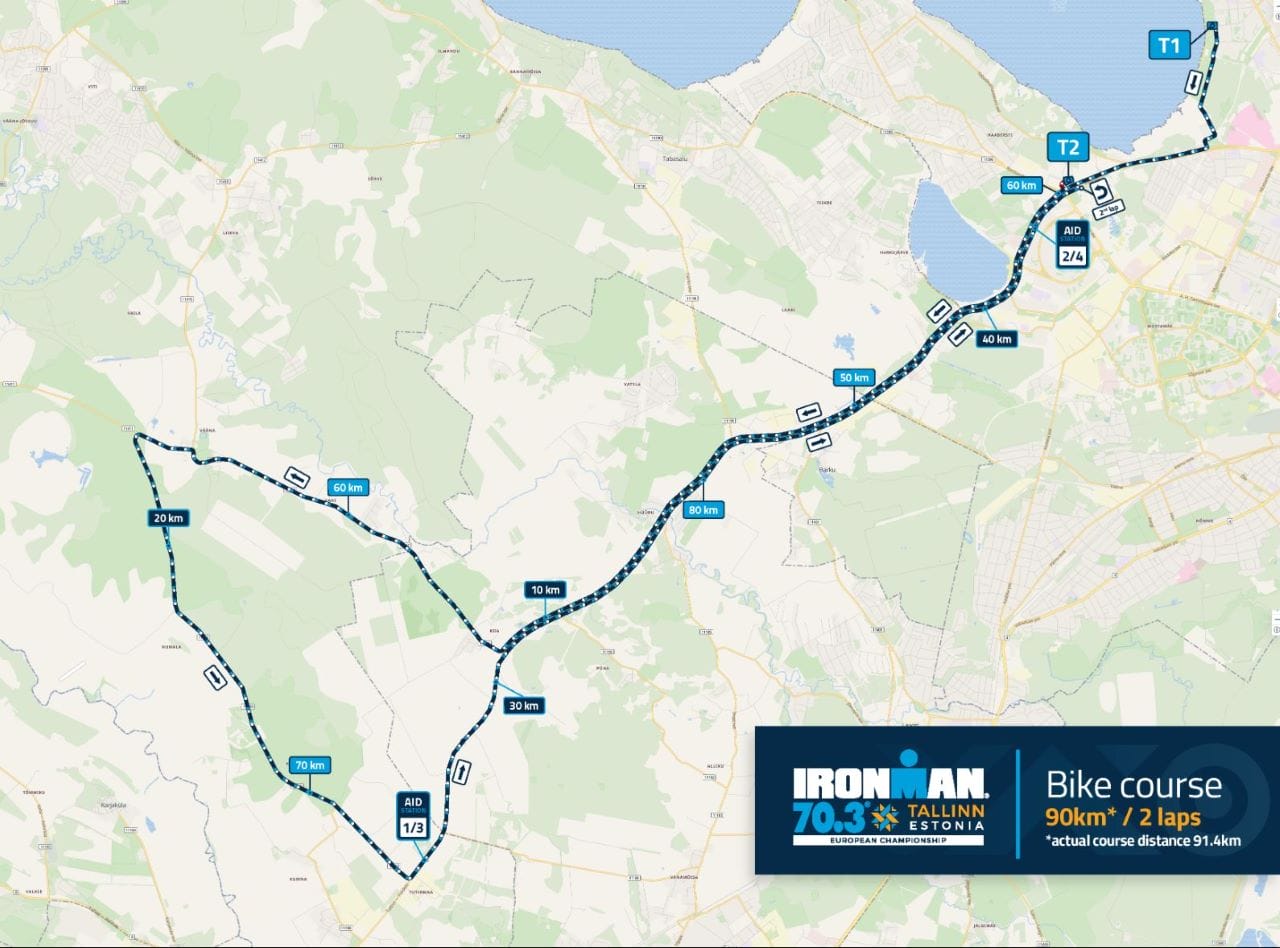 The fast, flat two-lap bike course takes you through a scenic mix of countryside and city. Starting at Stroomi, you'll head through some of the southern villages before heading back towards Tallinn. There's just 190m of elevation gain to contend with on each lap. Dial into that aero position and a fast bike split will be well within reach. "The road surfaces are amazing and the scenery is beautiful," says Tallinn AG finisher, Chris Wild. "The volunteers and locals really get behind the events too.”