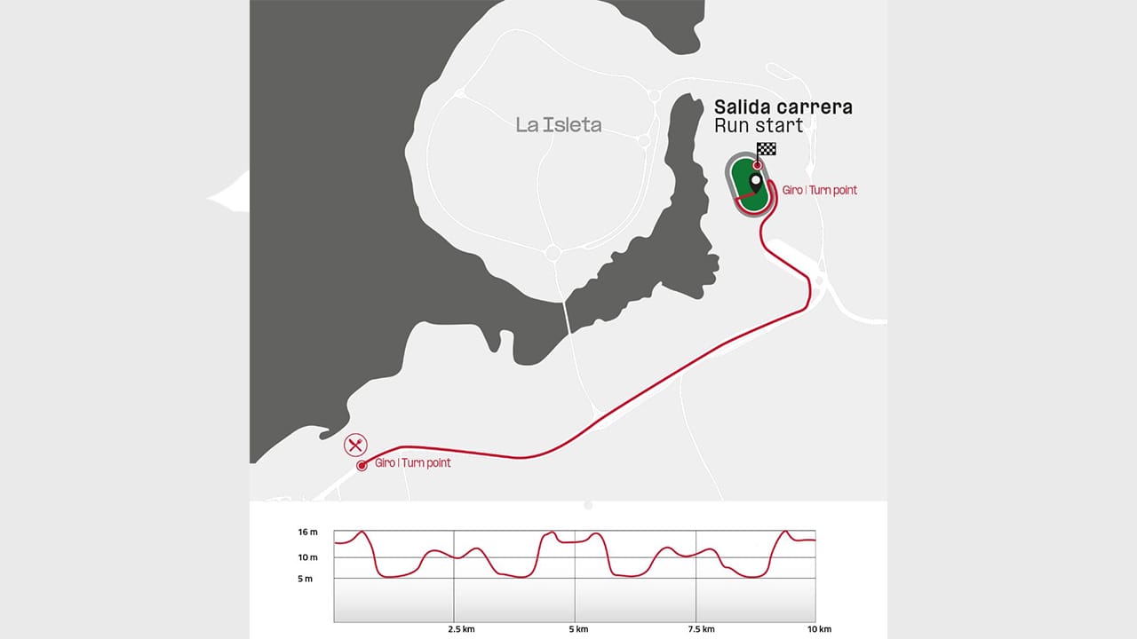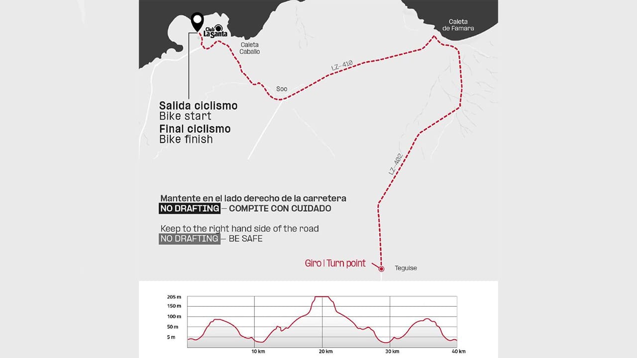 The non-drafting bike course sees athletes head out towards Caleta de Famara before tackling the climb up to Teguise. The summit marks the turnaround point, offering a well-earned descent before you push the watts back to T2.