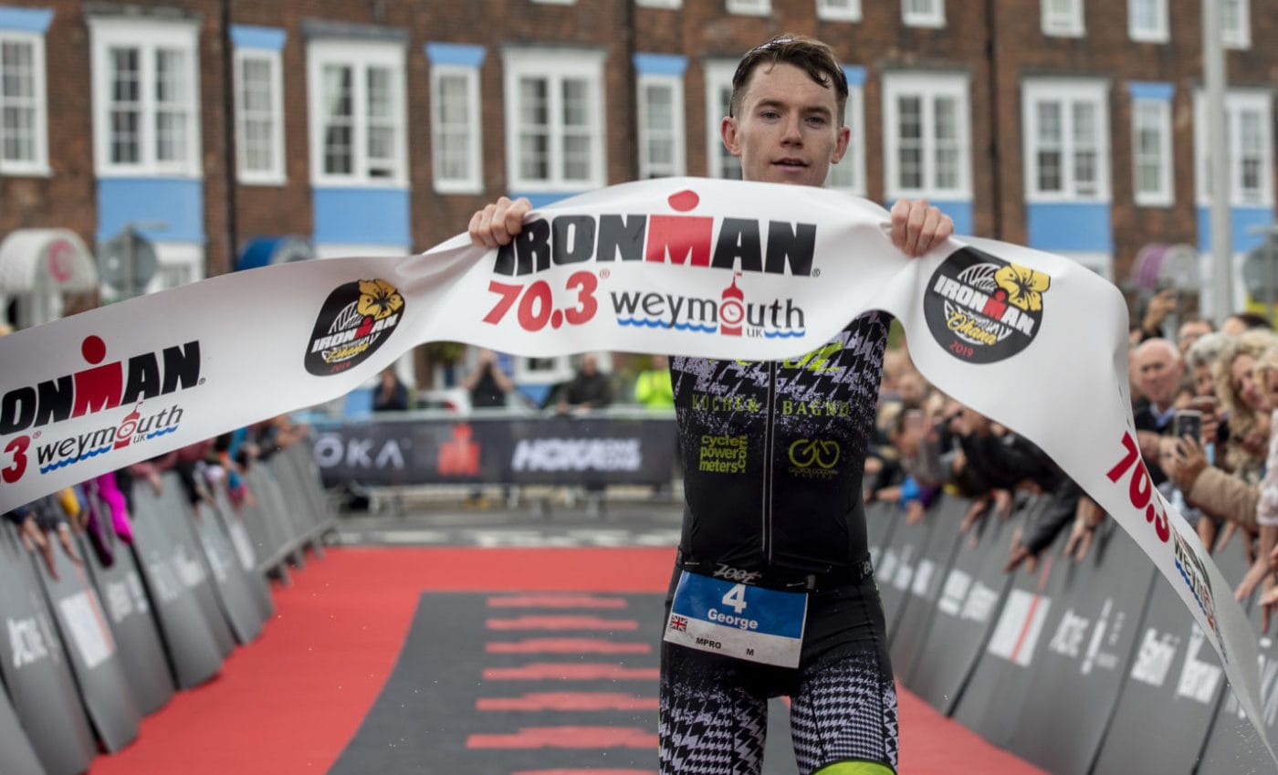 Wet and windy conditions lead to a shortened swim of 950m in Weymouth, where two British athletes who had performed superbly at the IRONMAN 70.3 World Championships recently proved that their season was far from over.