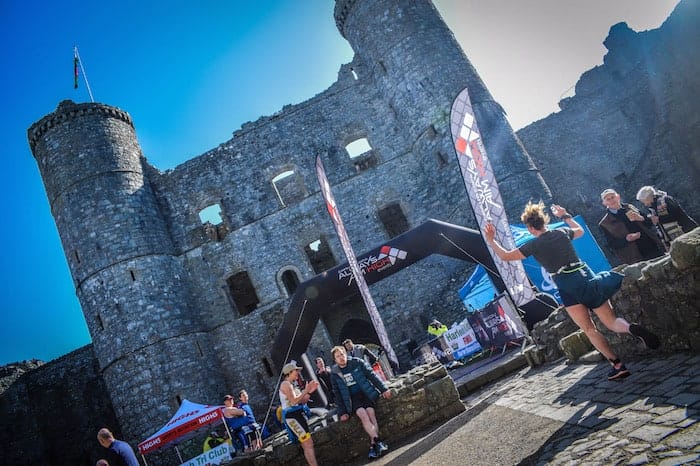 Minus temperatures overnight made way for glorious sunshine as the event kicked off with the triathlon, which was made up of a 400 metre pool swim, 21 km road cycle and a 6 km run, which is topped off with the ‘Storm the Castle’ section – a race to Harlech Castle along it’s mighty climb of 127 steps!