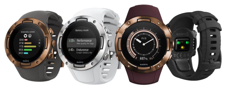 - The Suunto 5 is not only built for performance, it was made to look stylish. Robust stainless steel bezels, and four design variants – All Black, White, Burgundy Copper and Graphite Copper
