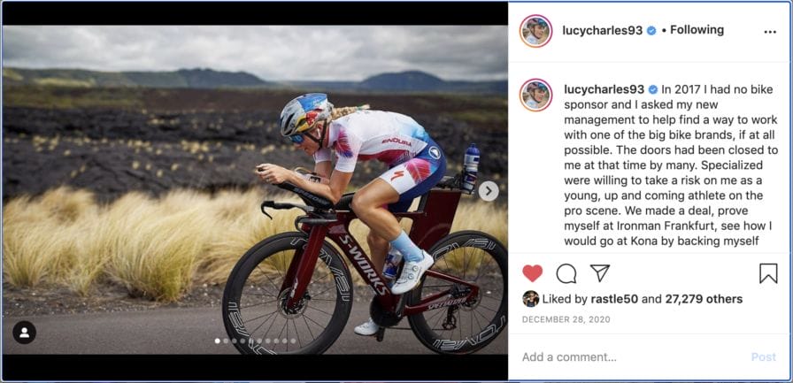 A lot of people have a misconception of how much a pro-triathlete earns and how their relationships with brands work. In general, how do Specialized’s athlete agreements work? Also, as previously acknowledged by Lucy Charles-Barclay, Specialized gave Lucy a shot when she turned pro, was this approach unique?